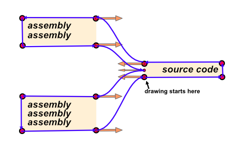 - draw the relation shape for each line of source and related assembly lines;